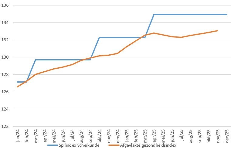 Wanneer de afgevlakte gezondheidsindex de spilindex bereikt of overschrijdt, stijgen de lonen met 2%.